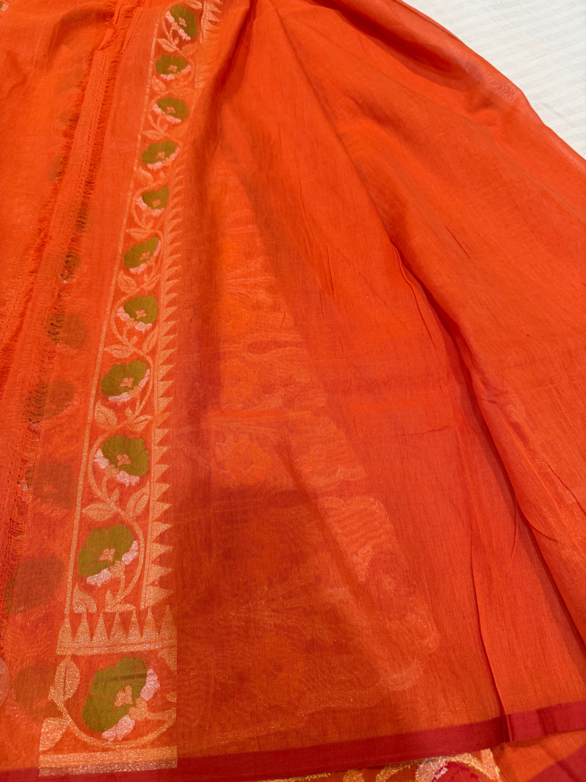 Banarasi Cotton katwork jamdani with Elegant Border Handloom Saree