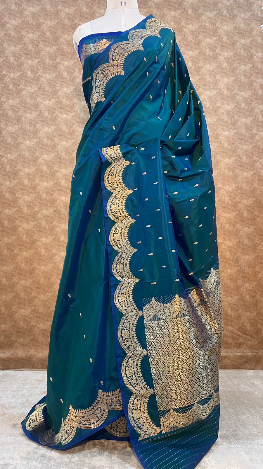 • Feature - Wear something special - this beautiful saree features a classic Indian Zari border booti design Sarees.