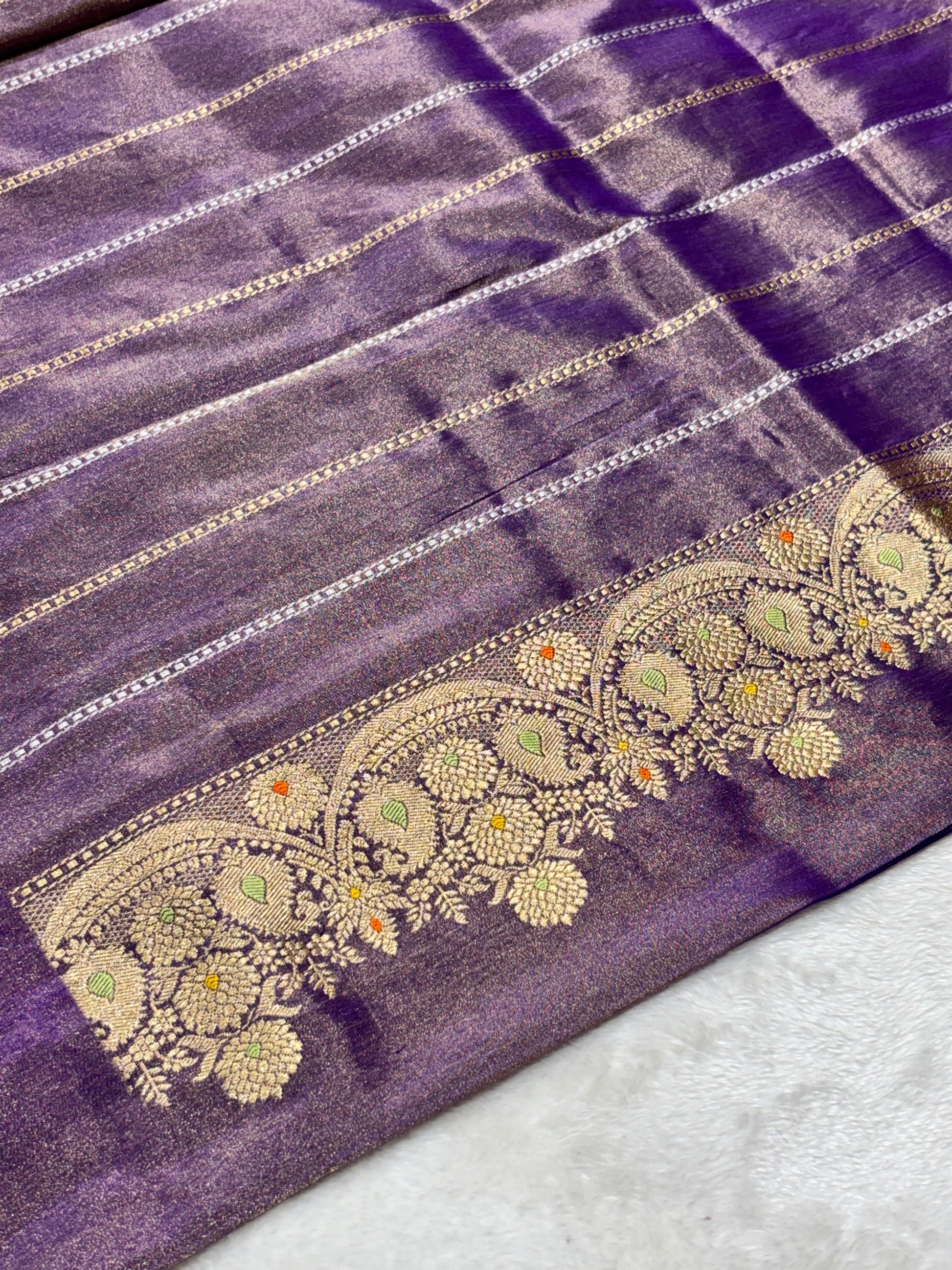 • Feature - Wear something special - this beautiful saree features a classic Indian zari skirt border Booti Sarees.