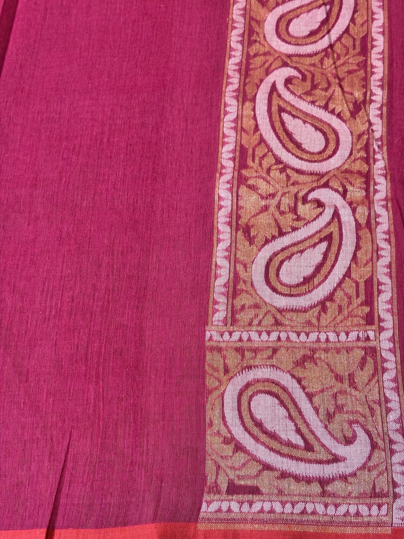 Pure Cotton Jamdani Saree | Elegant Berry Pink Design
