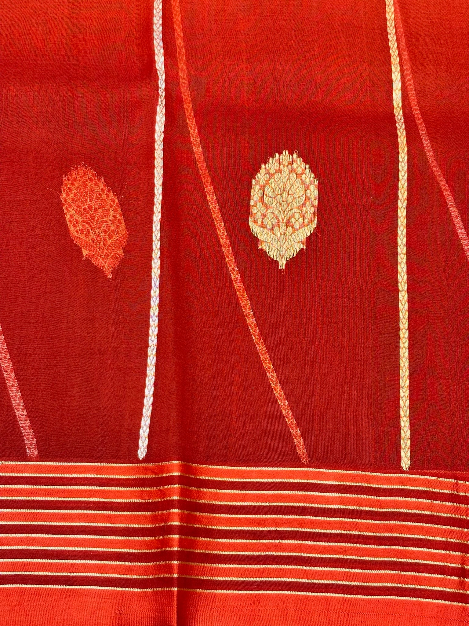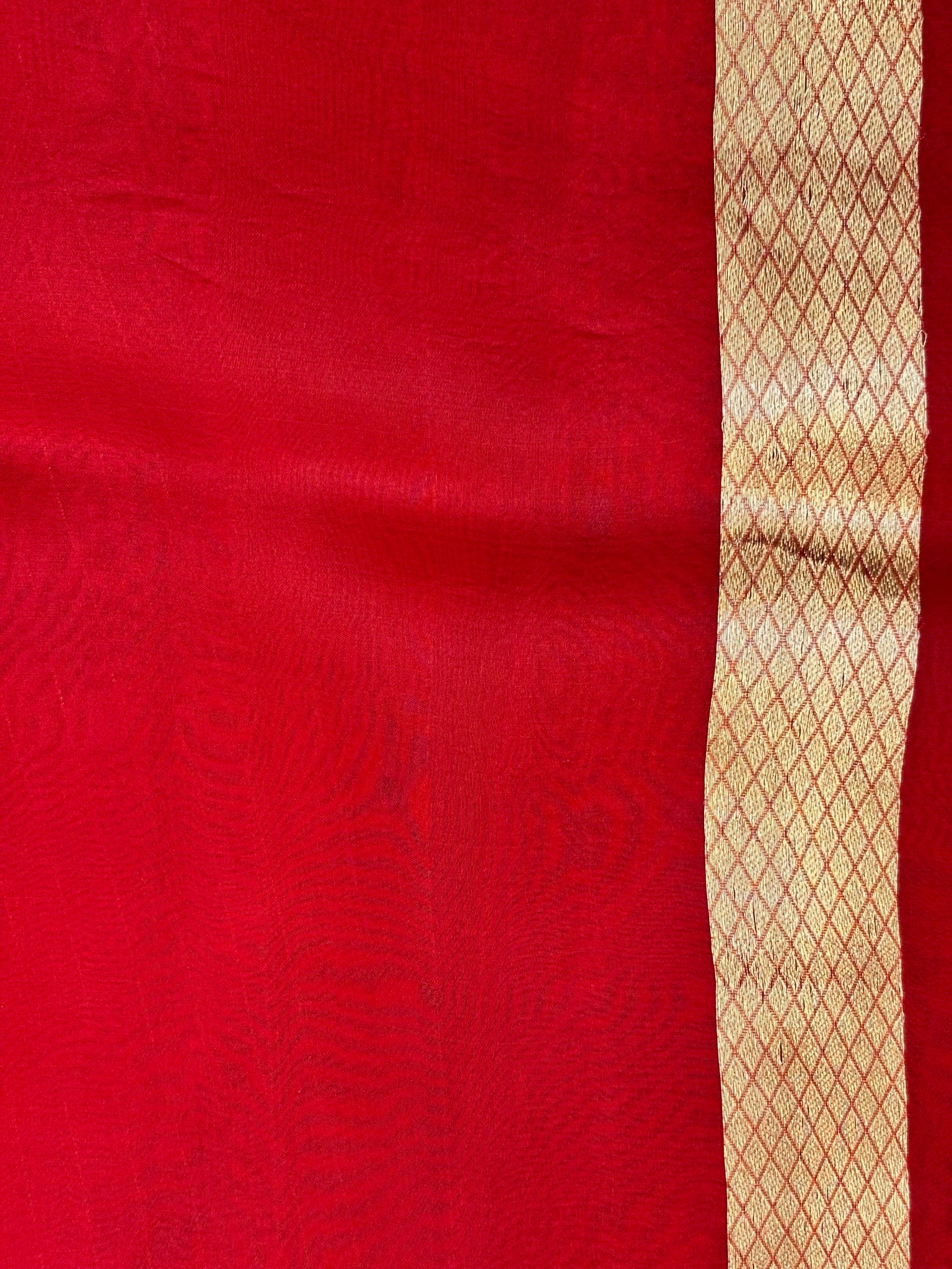 Red Premium Banarasi Kora Organza Silk Saree – 100% Handwoven | Elegant & Timeless Design