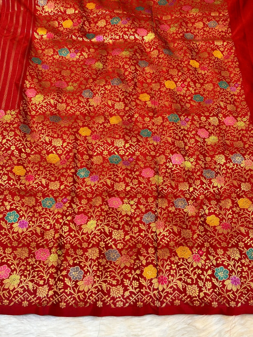 • Technique - The mesmerizing Kadwa technique is a time-consuming handwoven method that includes ornately crafted Meenakari motifs.