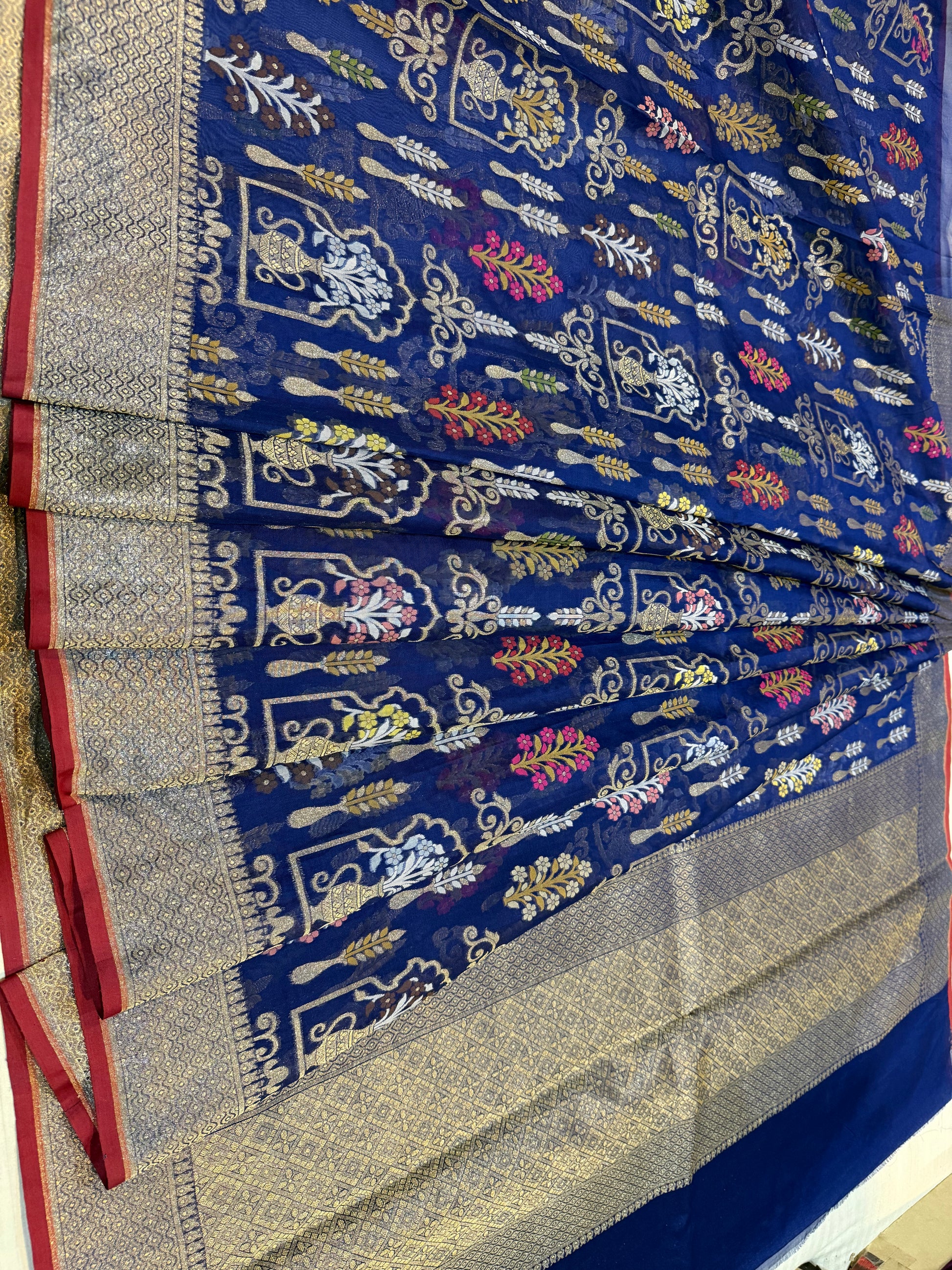 Blue Ektra kora silk Jamdani katwork Zari Border Anchal Mina Work Saree