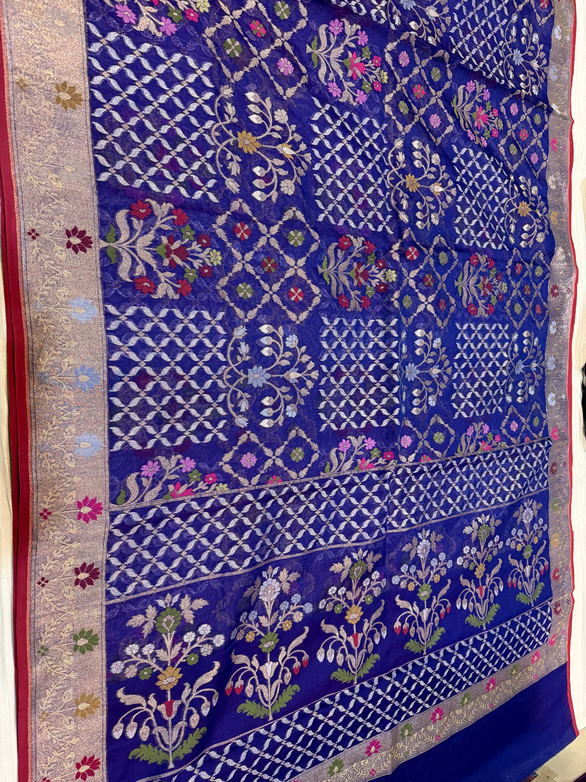 Navy Blue Ektra kora silk Jamdani katwork Zari Border Anchal Mina Work Saree