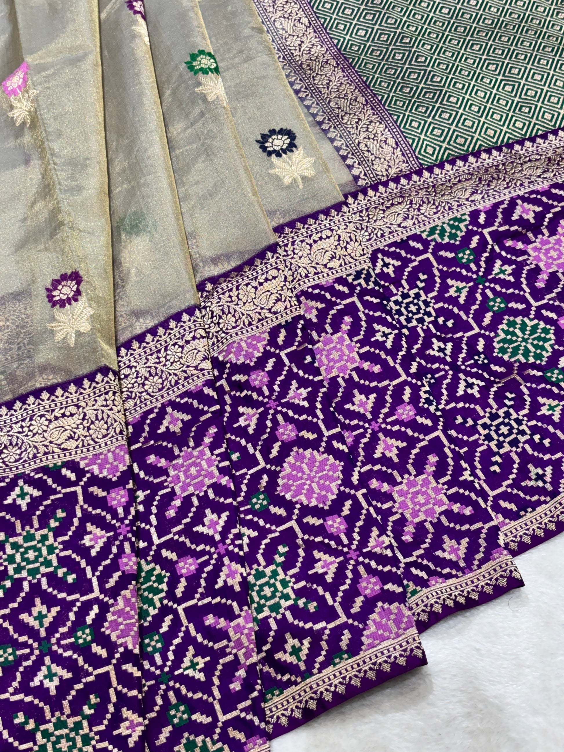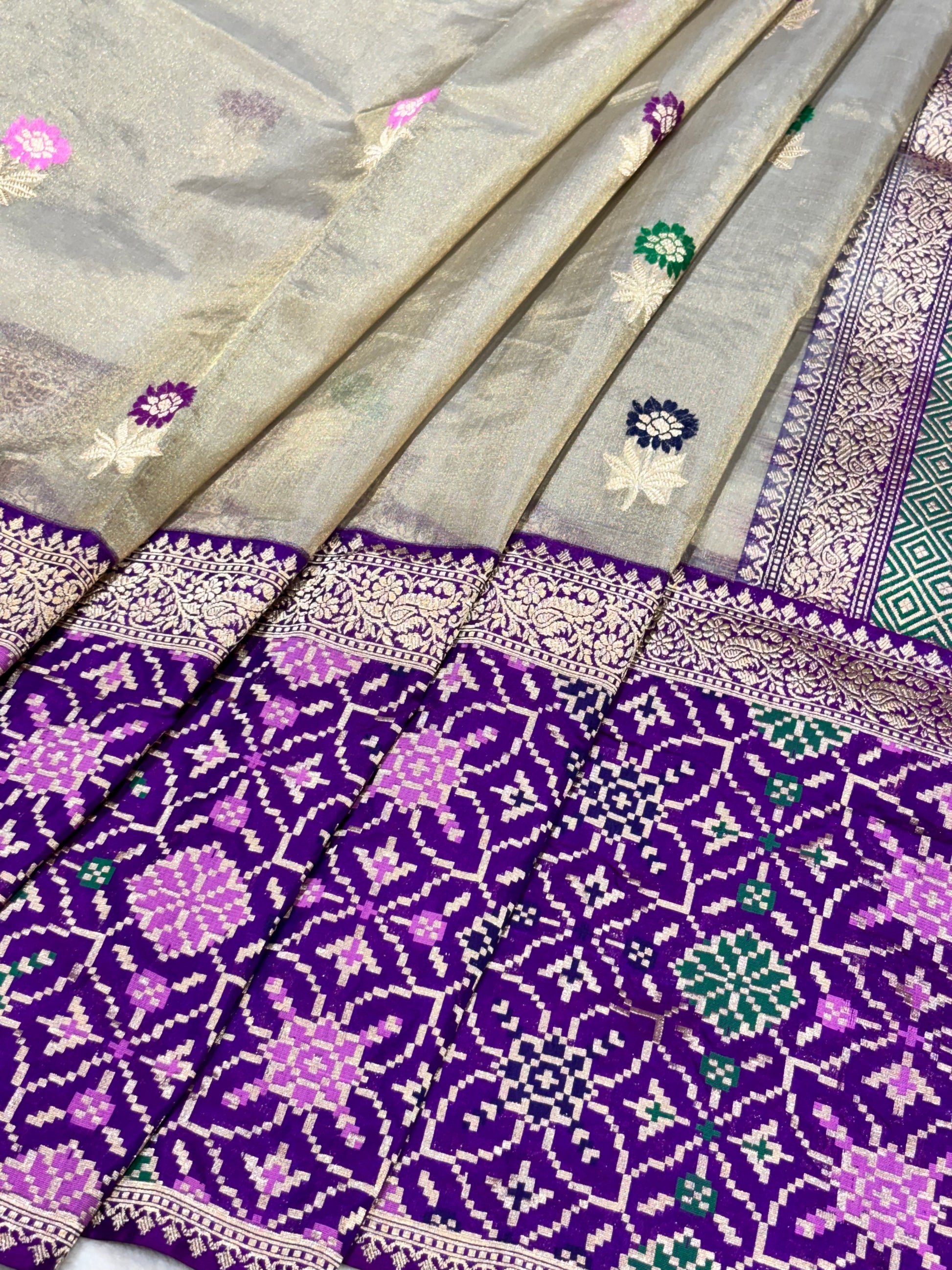 • Feature - Wear something special - this beautiful saree features a classic Indian zari skirt border Booti Sarees.