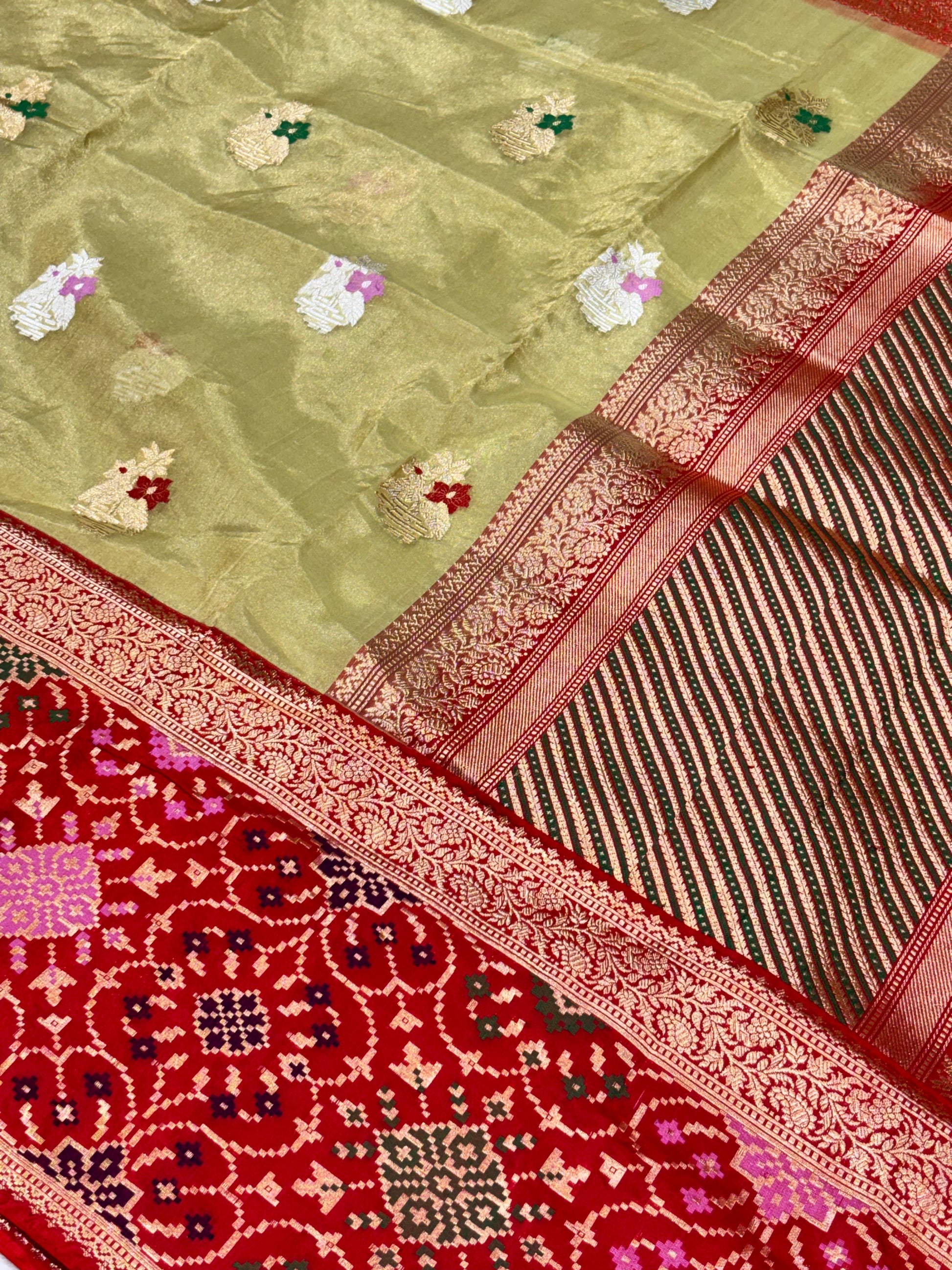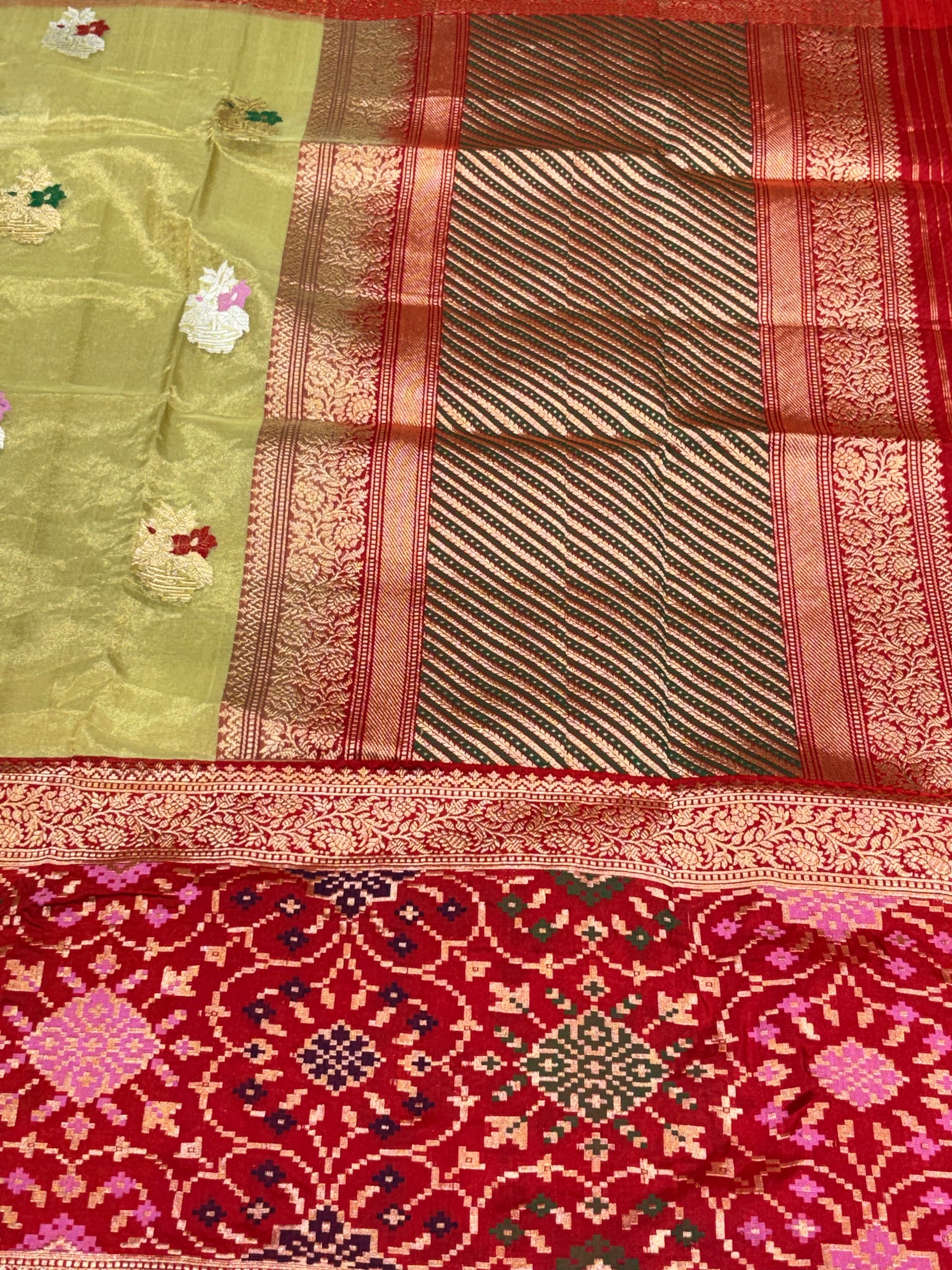• Feature - Wear something special - this beautiful saree features a classic Indian zari skirt border Booti Sarees.